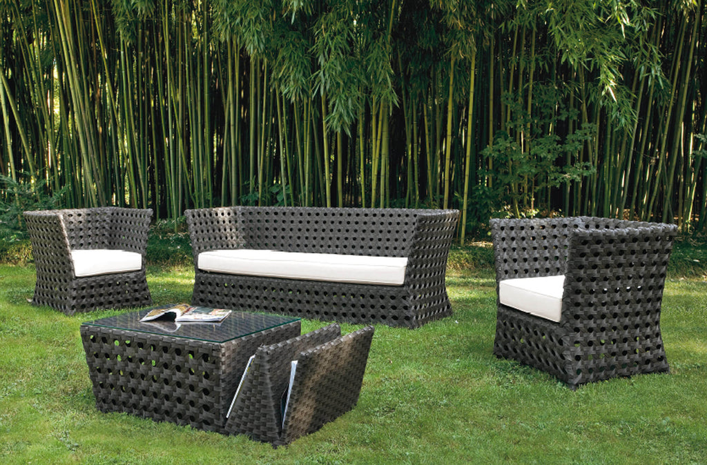 Set da Giardino Divano 2 Poltrone e Tavolino in Wicker Ranieri Paros