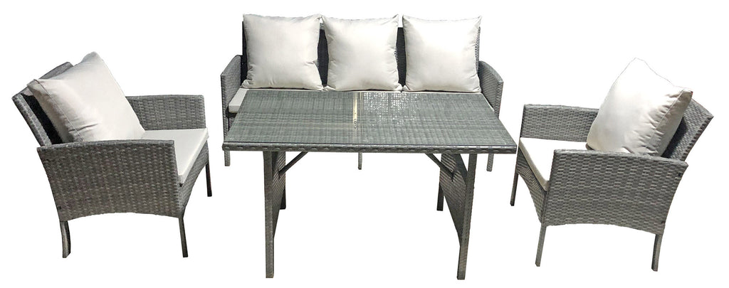 Set da Giardino Divano 2 Poltrone e Tavolo con Piano in Vetro Temperato
