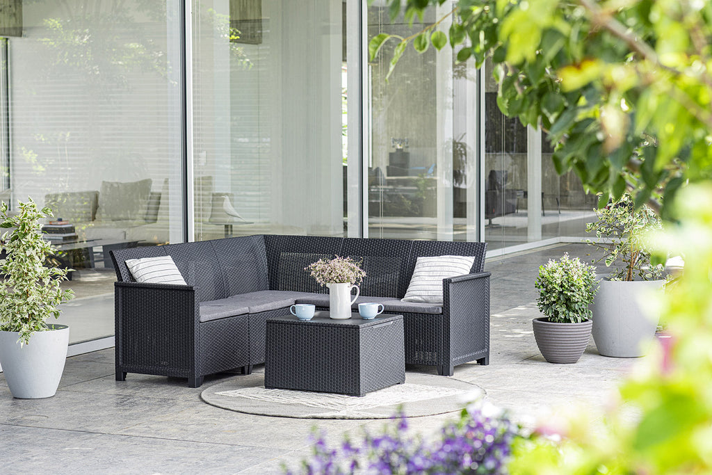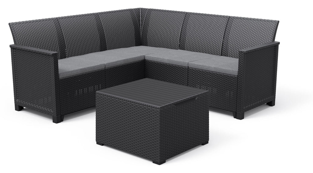 Set da Giardino Divano Angolare e Tavolino in Resina Keter Emma Corner Antracite