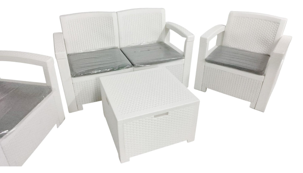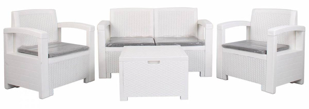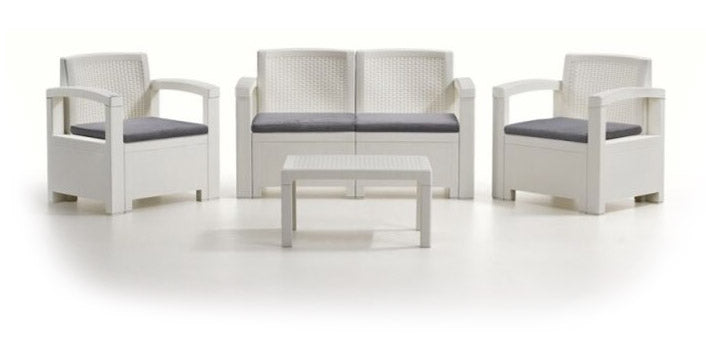 Set da Giardino Divano Poltrone e Tavolino in Polipropilene Bianco