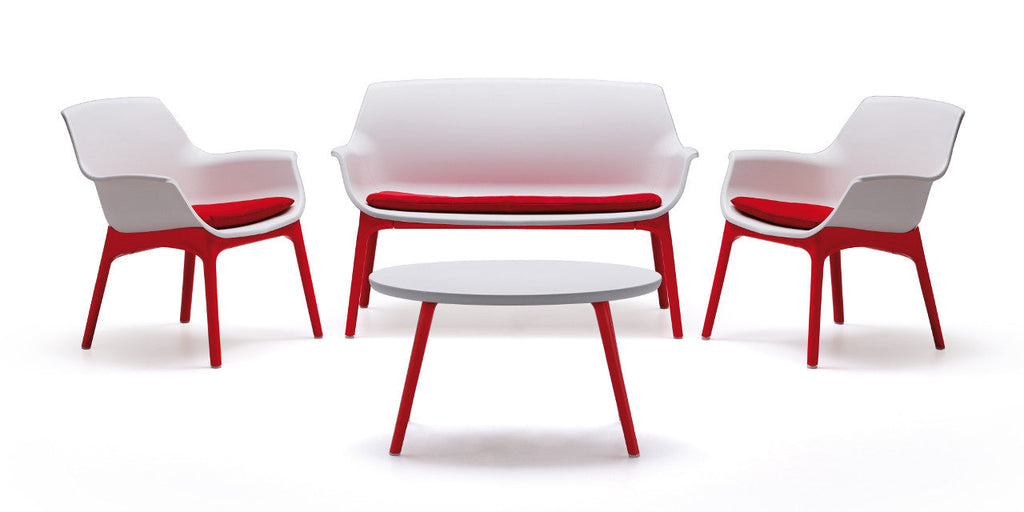 Set da Giardino Divano Poltrone e Tavolino in Polipropilene Vandi Bianco e Rosso