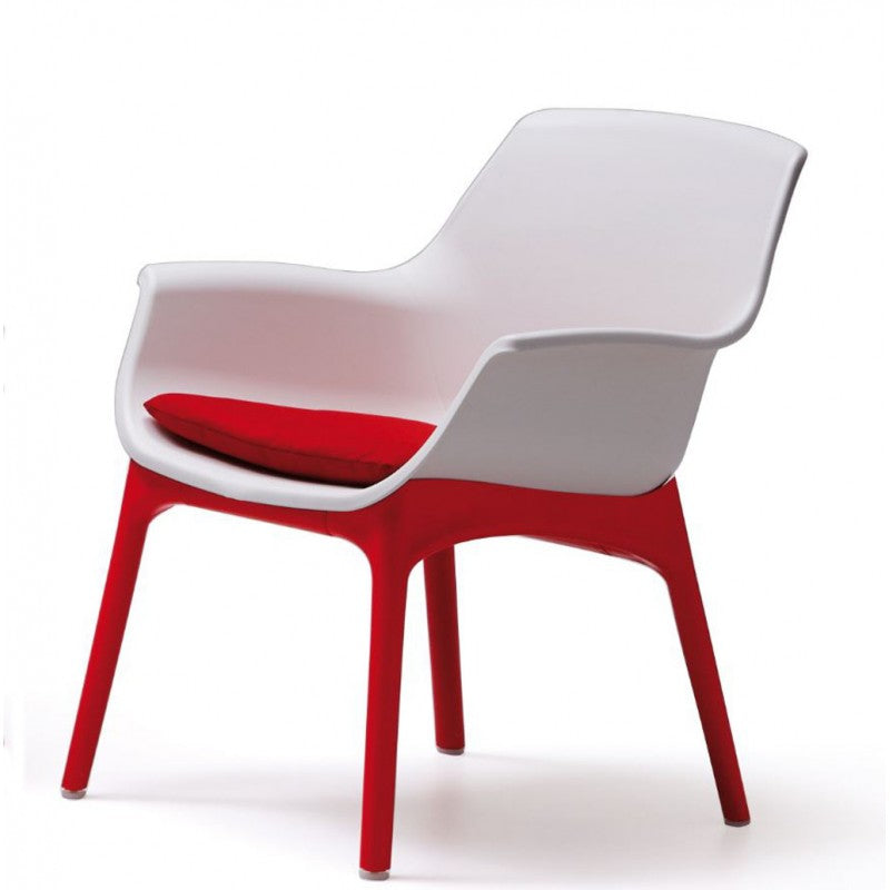 Realizzato interamente in polipropilene bicolore, si caratterizza per la sua seduta accogliente, comfortevole ed avvolgente, finemente completata da morbidi cuscini sfoderabili nella medesima tonalità del salotto, con spessore di 6cm.