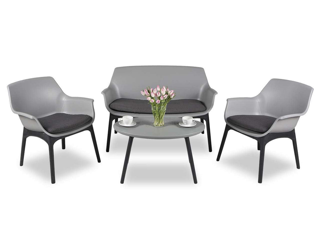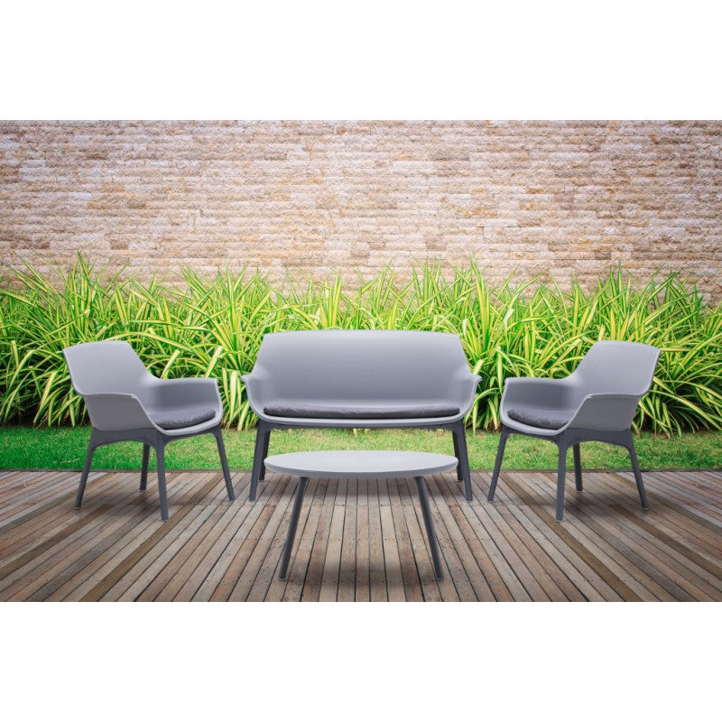 Set da Giardino Divano Poltrone e Tavolino in Polipropilene Vandi Grigio
