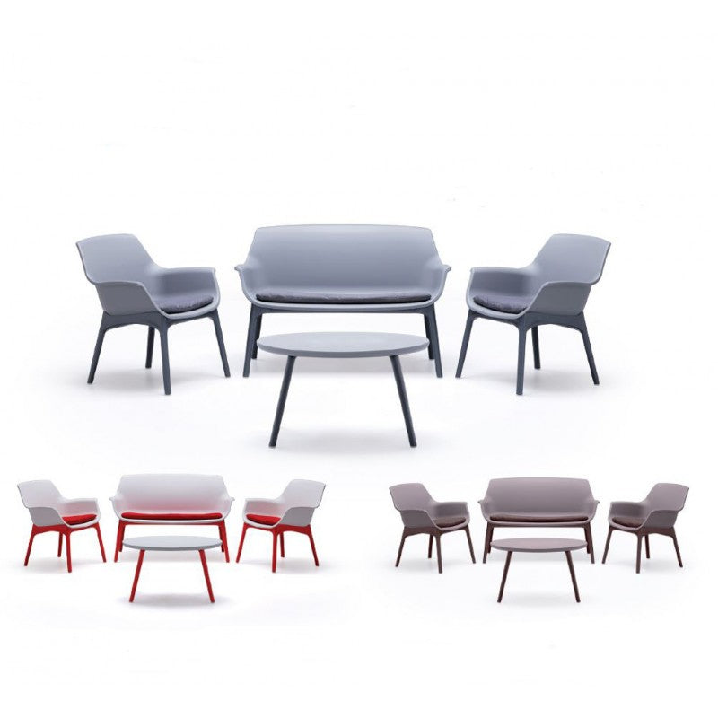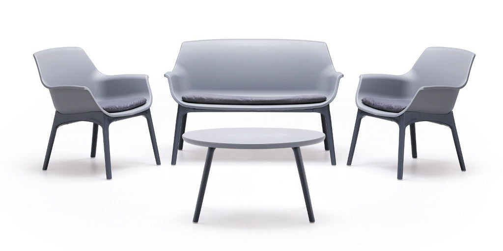 Il set da giardino è un nuovo salottino 4 posti pensato per arredare con stile, dove grazie al suo design originale, non cè alcun limite a qualsiasi situazione di impiego, indoor o outdoor.