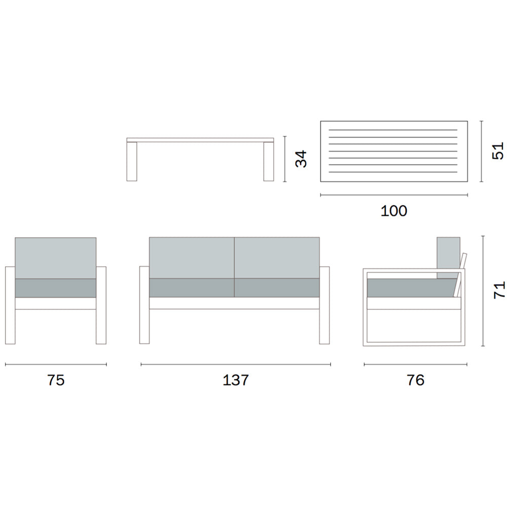 Set Salotto da Giardino 1 Tavolino 1 Divano 2 Poltrone in Alluminio Vorghini Fortaleza Grigio con Cuscini