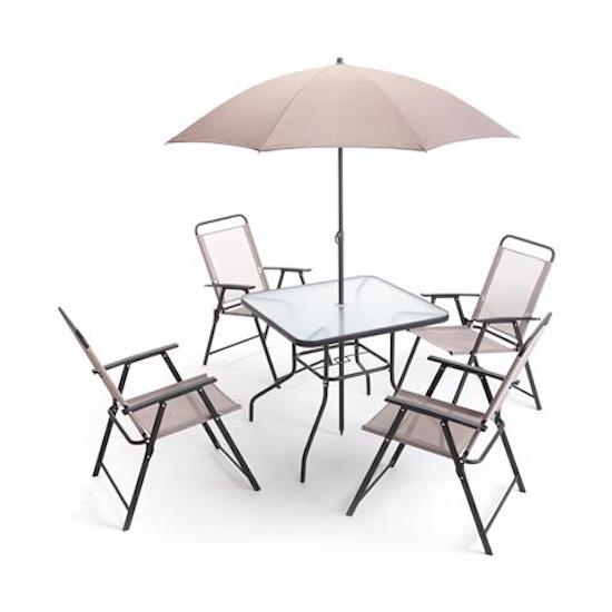 Set da Giardino in Ferro e Textilene con Tavolo Ombrellone e 4 Sedie Pieghevoli Taddei Savona