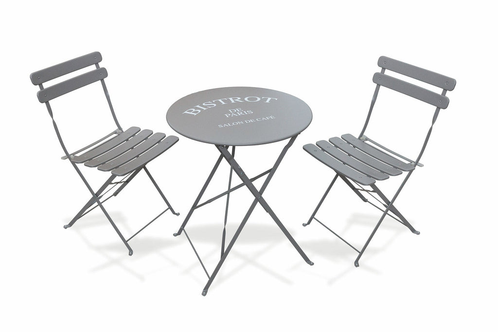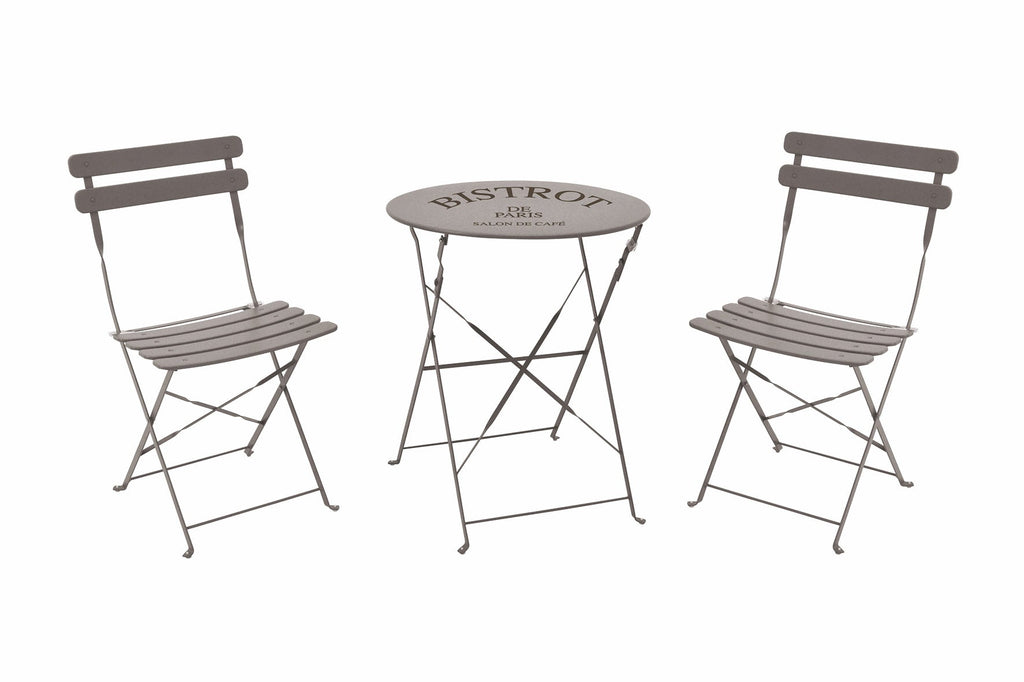Set da Giardino Pieghevole in Ferro con Tavolo e 2 Sedie Soriani Bistrot Tortora