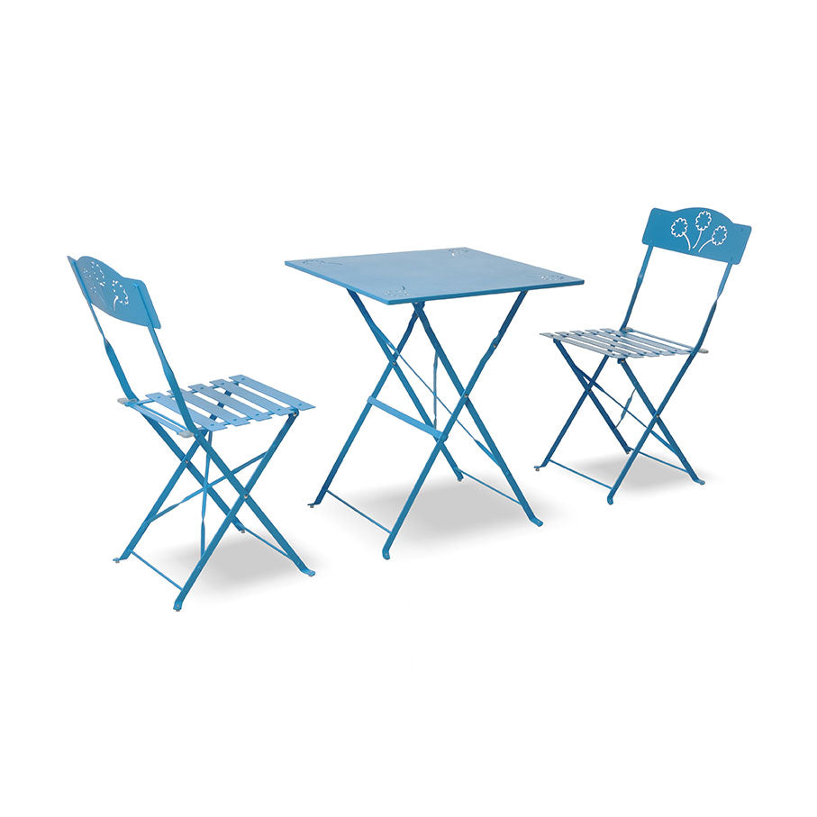 Set da Giardino Pieghevole In Ferro con Tavolo e 2 Sedie Taddei Bistro Azzurro