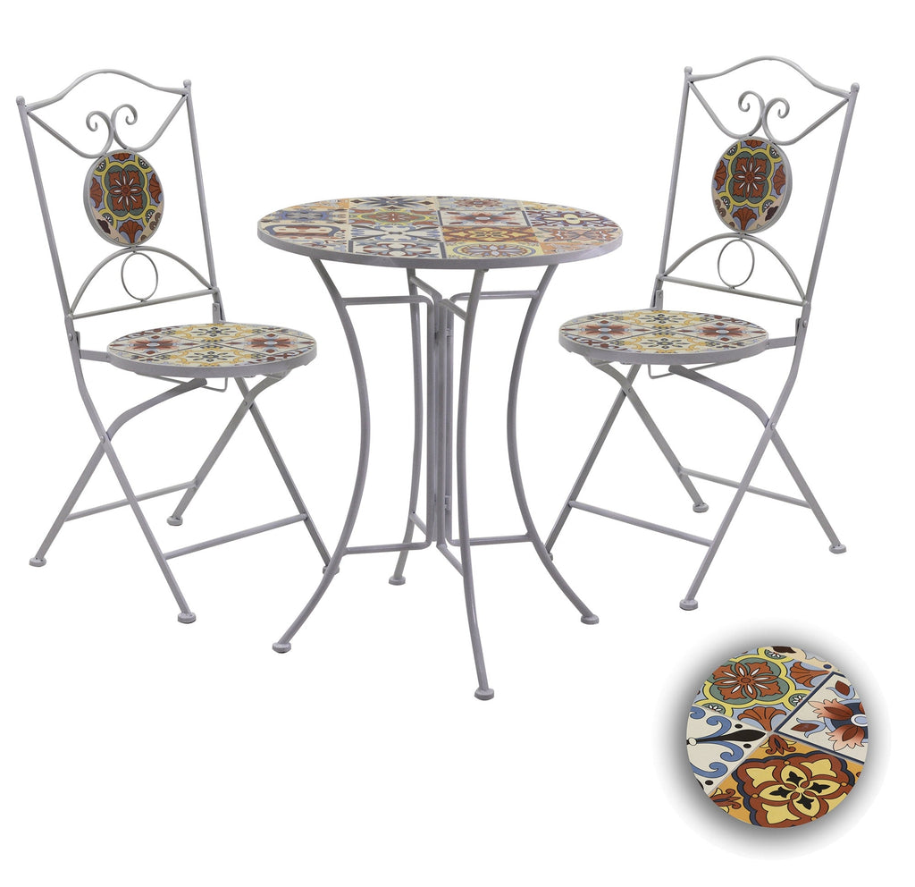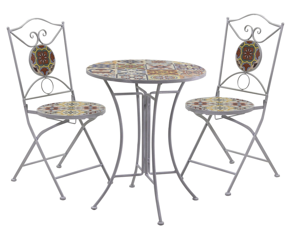 Set da Giardino Pieghevole in Metallo con Tavolo e 2 Sedie Tropea Bianco