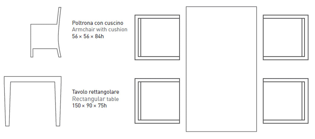 Il set pranzo da giardino EXTRO è realizzato in textilene e può ospitare fino a 4 persone. Il design è raffinato ed elegante, in colore scuro con i piedini di appoggio metallici a contrasto. Le poltrone hanno schienale alto e braccioli, il tavolo ha eleganti gambe con sezione ad L.EXTRO può essere utilizzato all'interno o all'esterno, grazie al materiale in grado di resistere agli agenti atmosferici. Sarà un piacere creare un'area pranzo in giardino, veranda o nella loggia per godere della bella stagione con famiglia e amici! Di facile pulizia. Cuscini delle sedute inclusi.