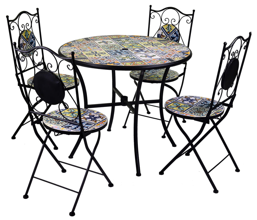 Set da Giardino Tavolo e 4 Sedie in Metallo con Mosaico Trapani Nero