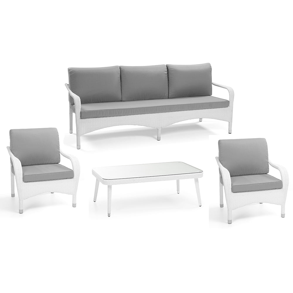Caratteristiche Tecniche Set da Giardino Tavolo 2 Poltrone e Divano 3 Posti in Polyrattan Adila Bianco