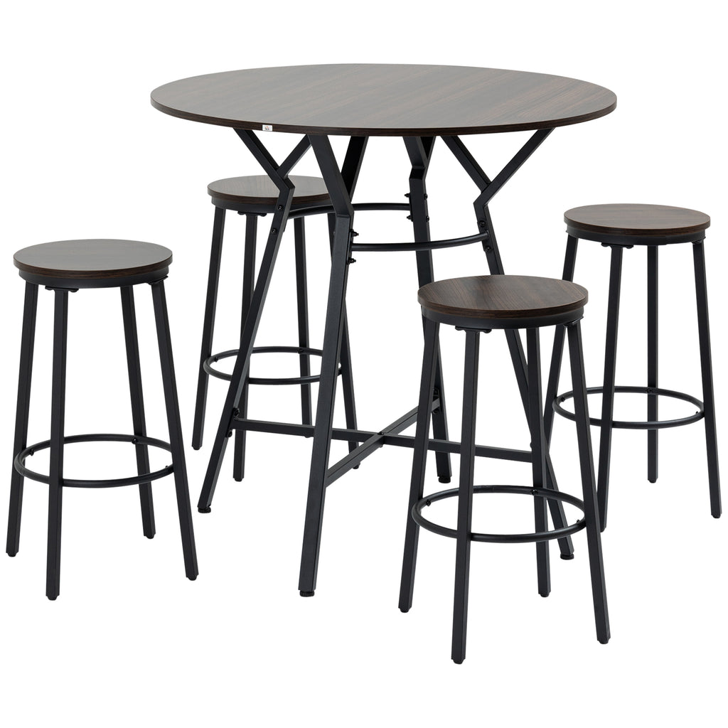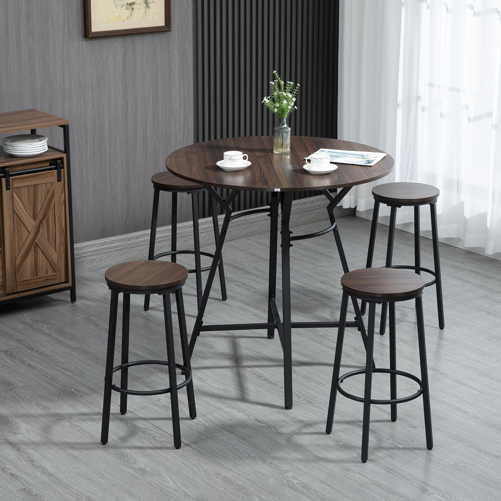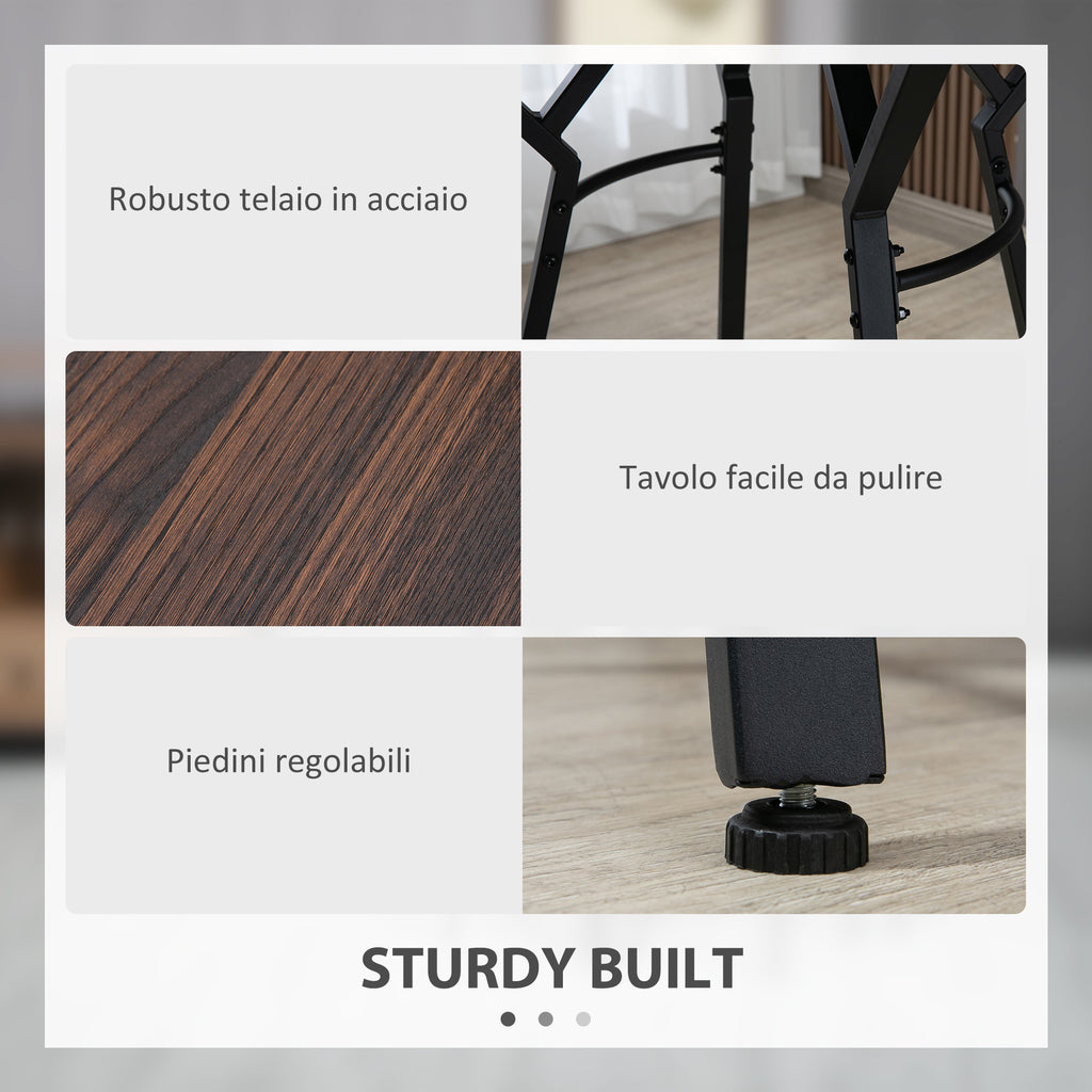 Set da Pranzo Tavolo e 4 Sgabelli in Legno Truciolare e Acciaio Noce