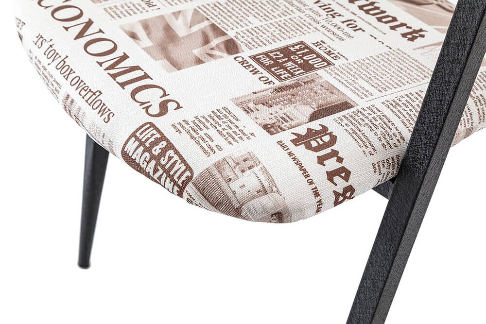 Set di 2 Sedie In Tessuto Fantasia Giornale e con struttura in metallo nero opaco. Il rivestimento in tessuto copre sia la seduta che i piedi delle sedie, saranno lideale per larredamento della tua casa dalla cucina al soggiorno doneranno un tocco allo stesso tempo classico e moderno.Tutto garantito dal marchio TFT Serie Chair che offre la massima qualità su i suoi prodotti.