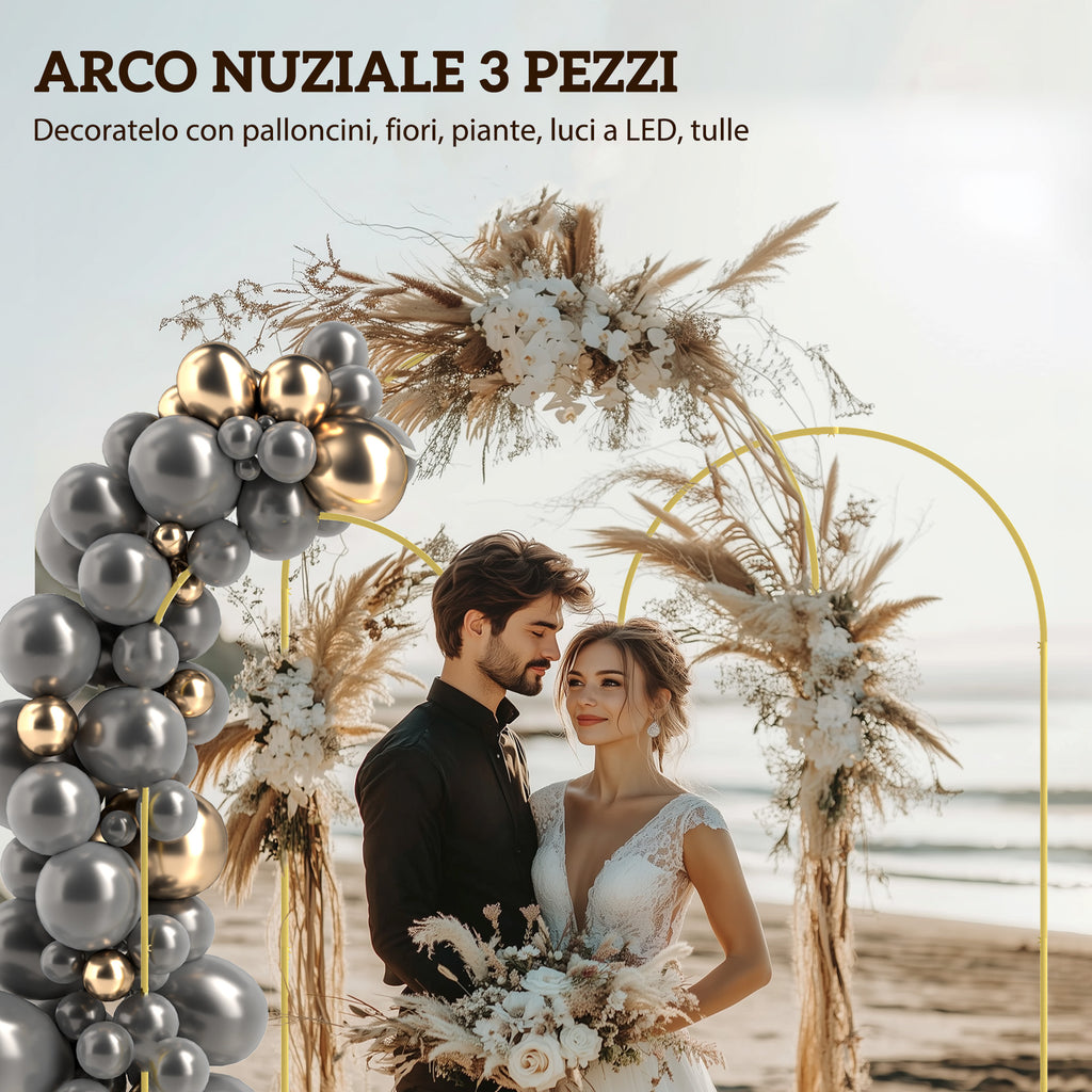 • SET DA GIARDINO TRE PEZZI: Rivoluziona ogni evento con questo elegante set di archi da giardino dalla finitura dorata lussuosa. Sfrutta le diverse altezze di 2.2 m, 2 m e 1.8 m del set di archetti da giardino per adattarli a ogni tua necessità