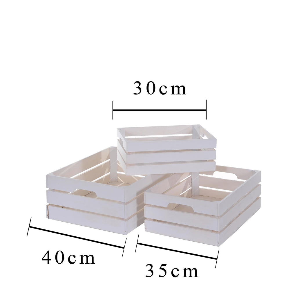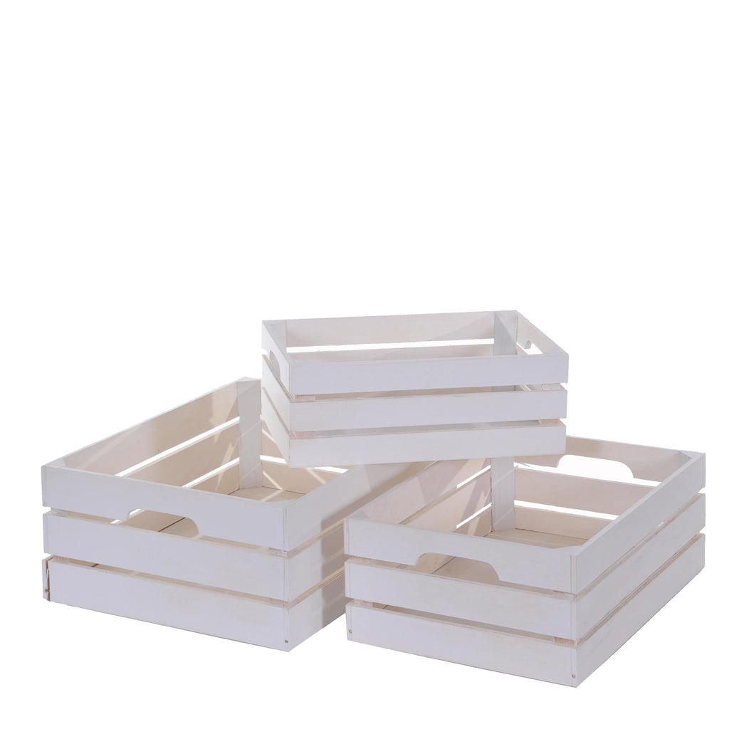 Set di 3 Cassetta in Legno Larghezza 40 cm Bianco