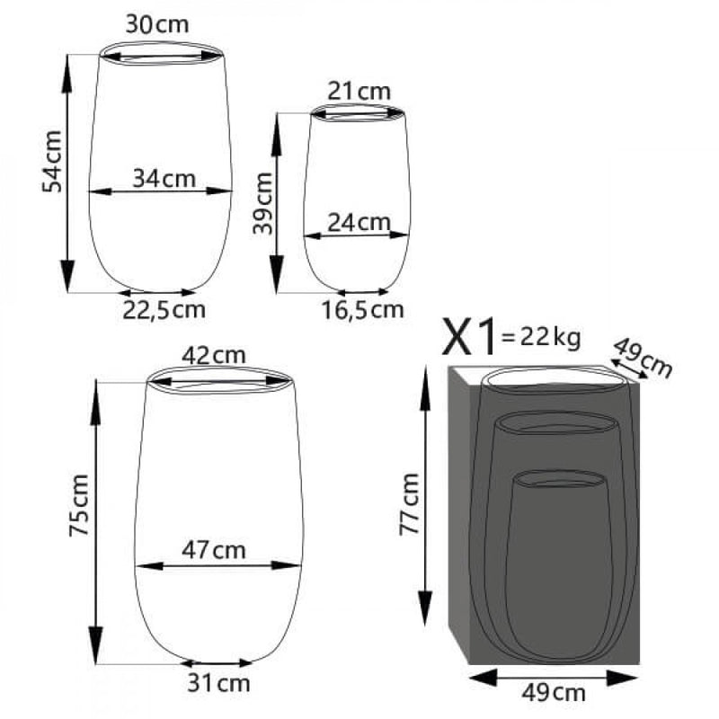 Set di 3 vasi Fiordaliso in Fibra sintetica Grigio scuro