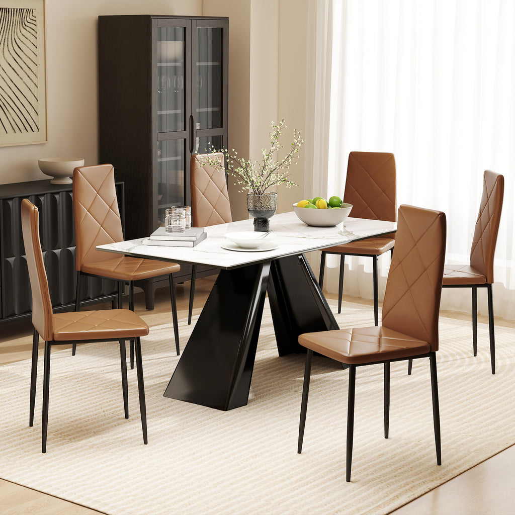 Set di 6 Sedie da Pranzo Moderne 41x50x97 cm con Schienale Alto in Finta Pelle e Acciaio Marrone