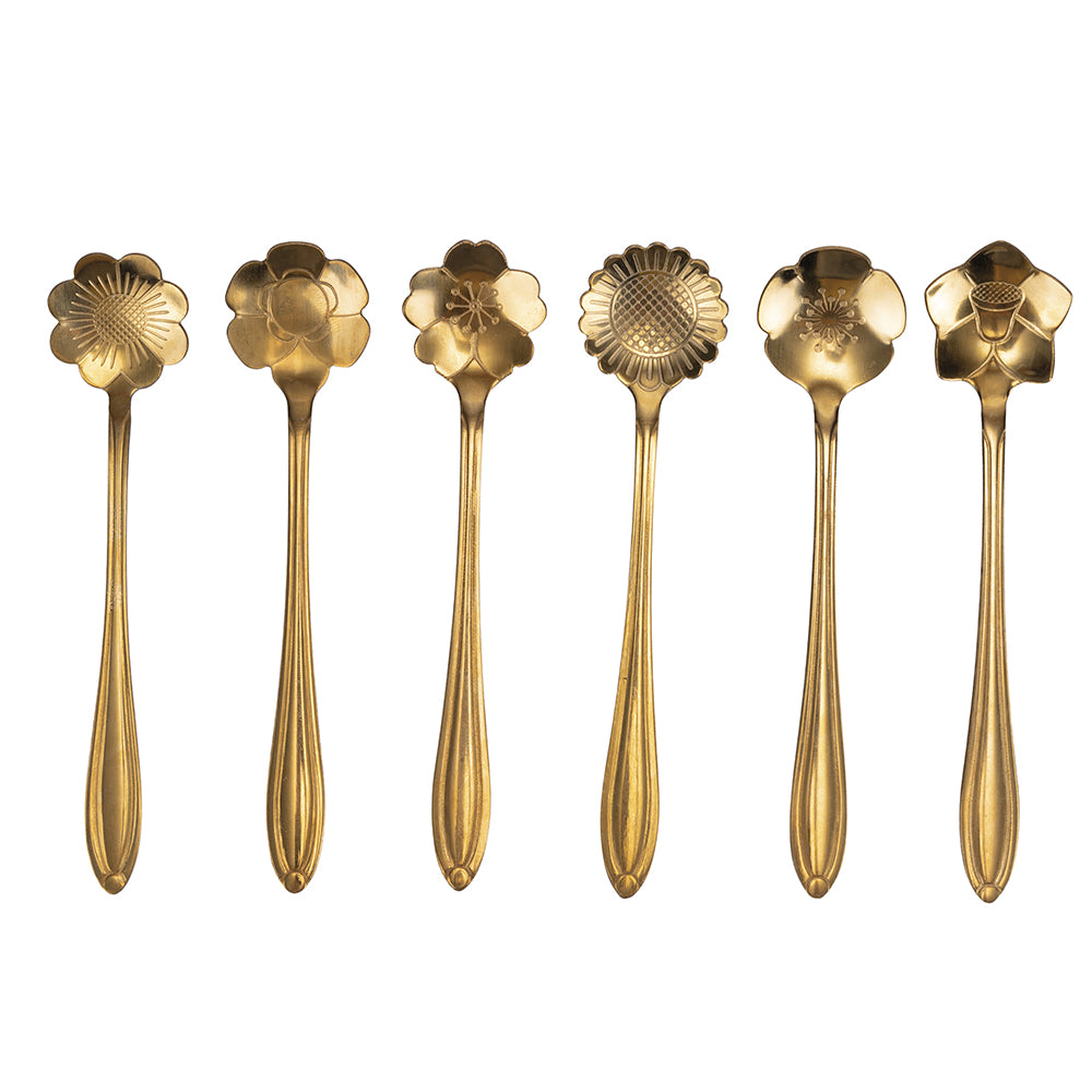 Set di Cucchiaini 6 Pezzi 12,5x2,5x0,5 cm in Acciaio Inox VdE Tivoli 1996 Luxury Foglie Oro