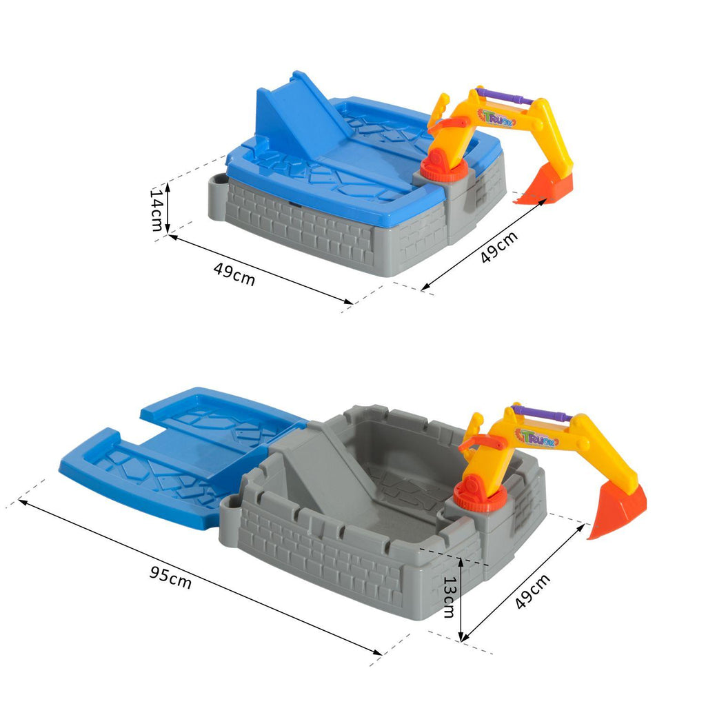 Inclusi un box per la sabbia, un coperchio, un camion, un secchiello, un escavatore e tanti altri accessori.