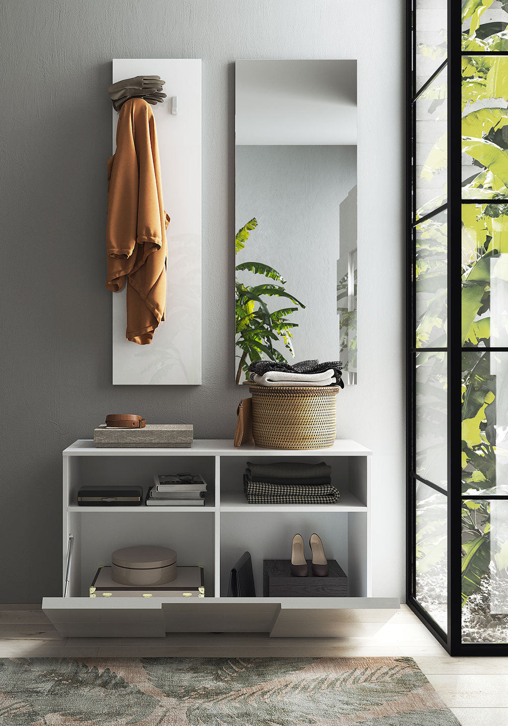 Set Ingresso Mobile 1 Anta a Ribalta Appendiabiti 91x36x165 cm e Specchio 50x110 cm Modello Dama Bianco Lucido