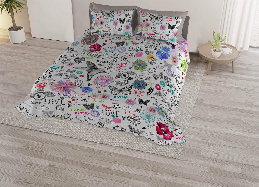 Set Lenzuola Matrimoniale con Stampa Sopra e Federe in Microfibra