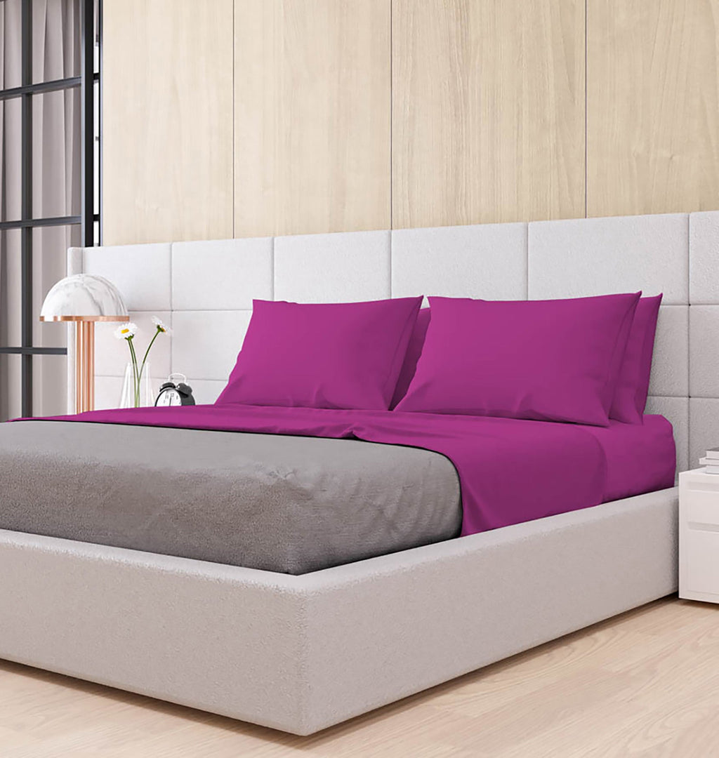 Set Lenzuola Matrimonale Sopra Sotto e Federe Tinta Unita Fucsia