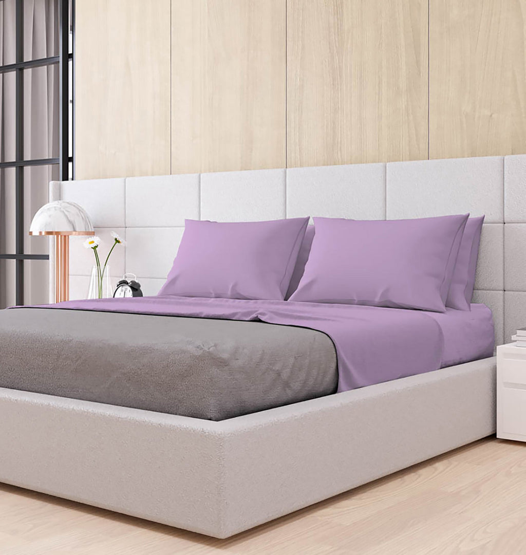 Set Lenzuola Matrimonale Sopra Sotto e Federe Tinta Unita Lilla