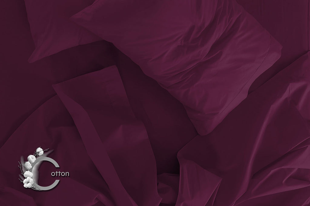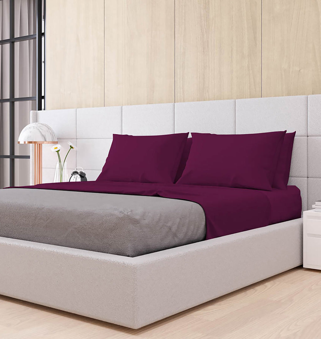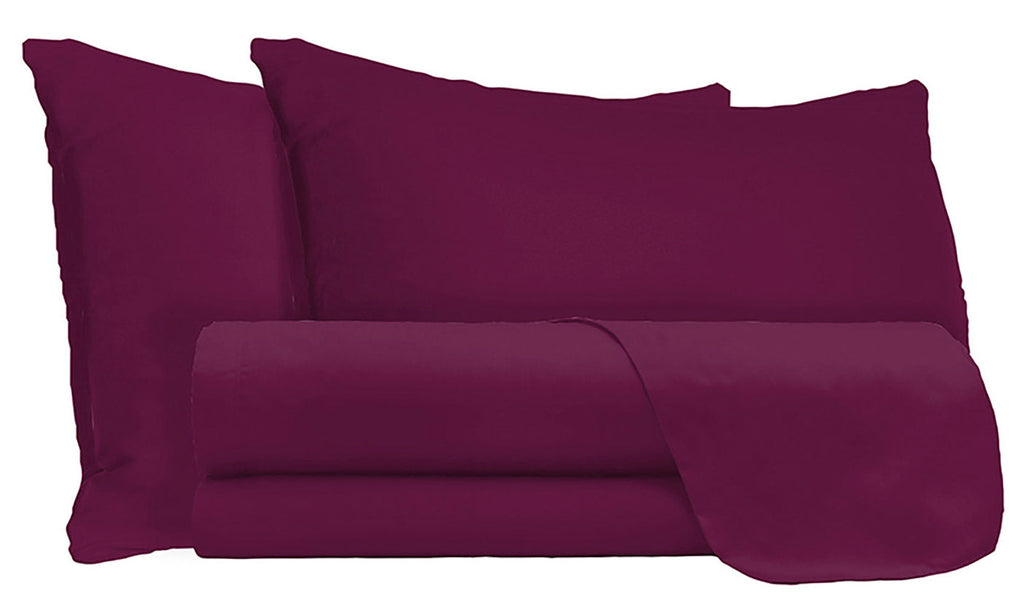 Set Lenzuola Matrimonale Sopra Sotto e Federe Tinta Unita Prugna
