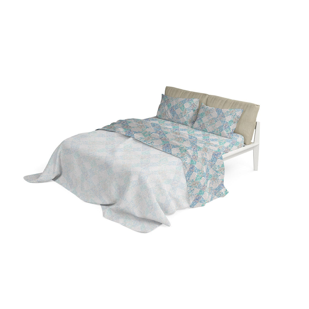 Set Lenzuola Matrimoniale con Stampa Sopra Sotto e Federe in Cotone Athena Eva Blu
