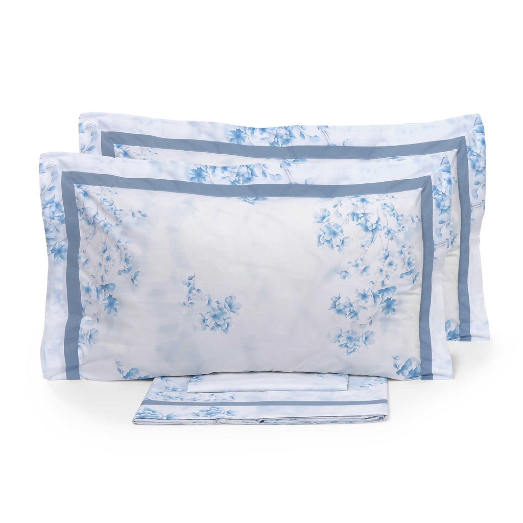Set Lenzuola Matrimoniale Sopra Sotto e Federe in Percalle di Cotone Garrini Michelle Azzurro