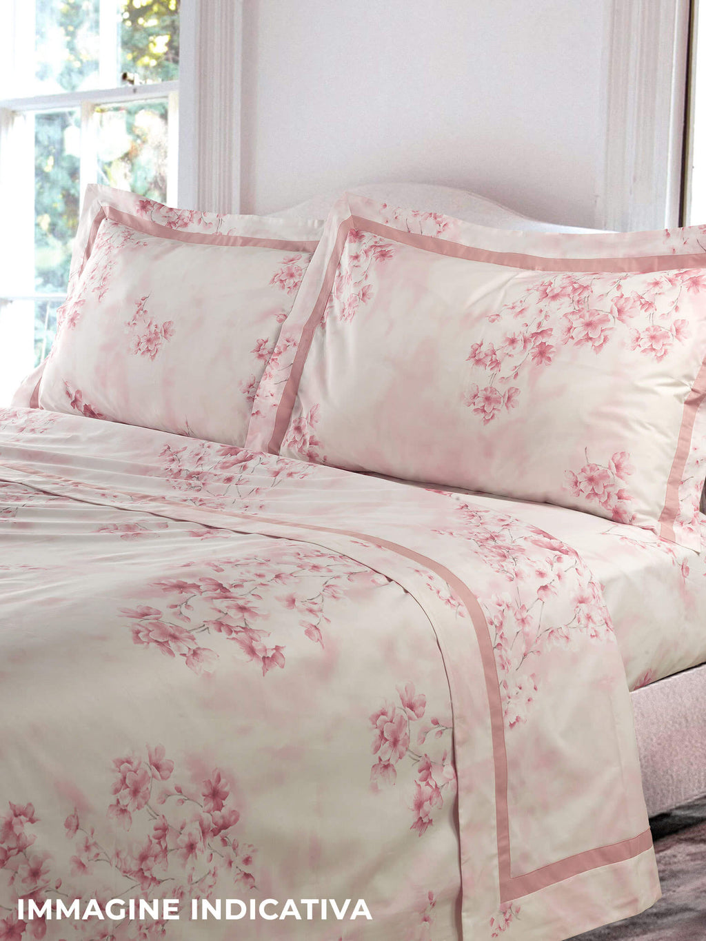 Completo letto in percalle di puro cotone 200 T.C. stampato. Include: 1 lenzuolo sopra, 1 lenzuolo sotto con angoli e 2 federe. Interamente realizzato e confezionato in Italia secondo la tradizione tessile artigiana Toscana."