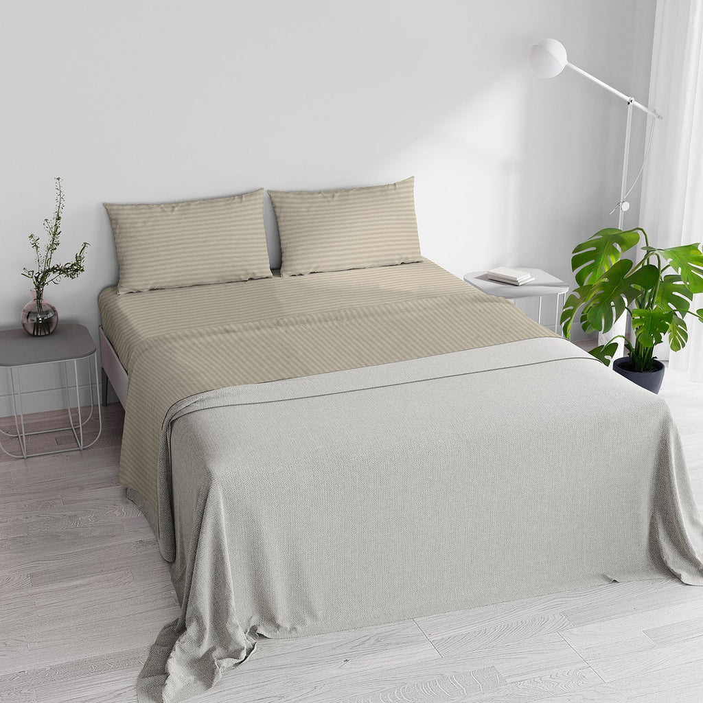 Set Lenzuola Matrimoniale Sopra Sotto e Federe in Raso di Poliestere Tortora