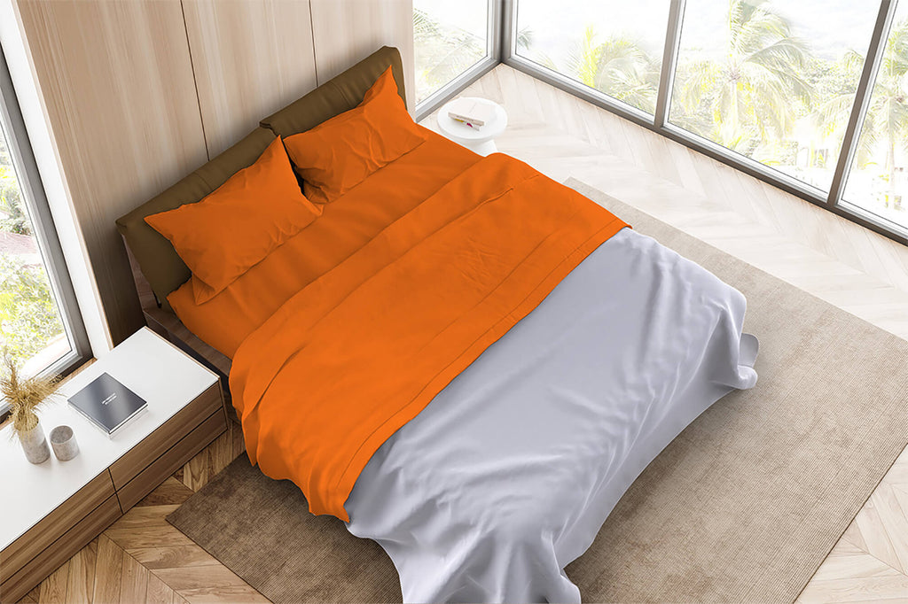 Set Lenzuola Matrimoniale Sopra Sotto e Federe Tinta Unita Arancio