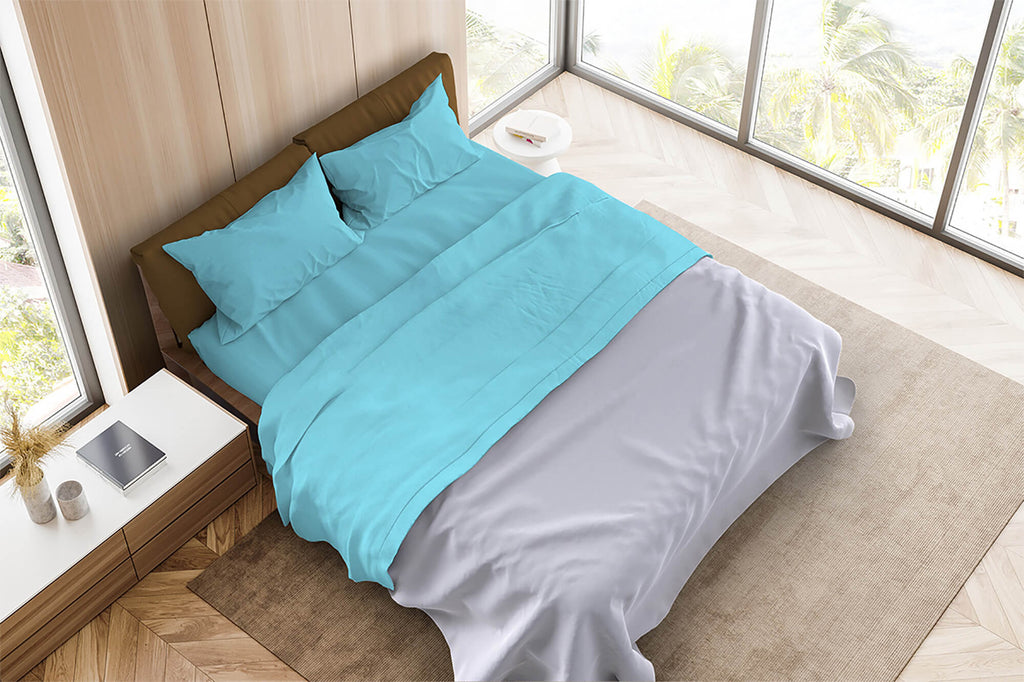 Set Lenzuola Matrimoniale Sopra Sotto e Federe Tinta Unita Azzurro