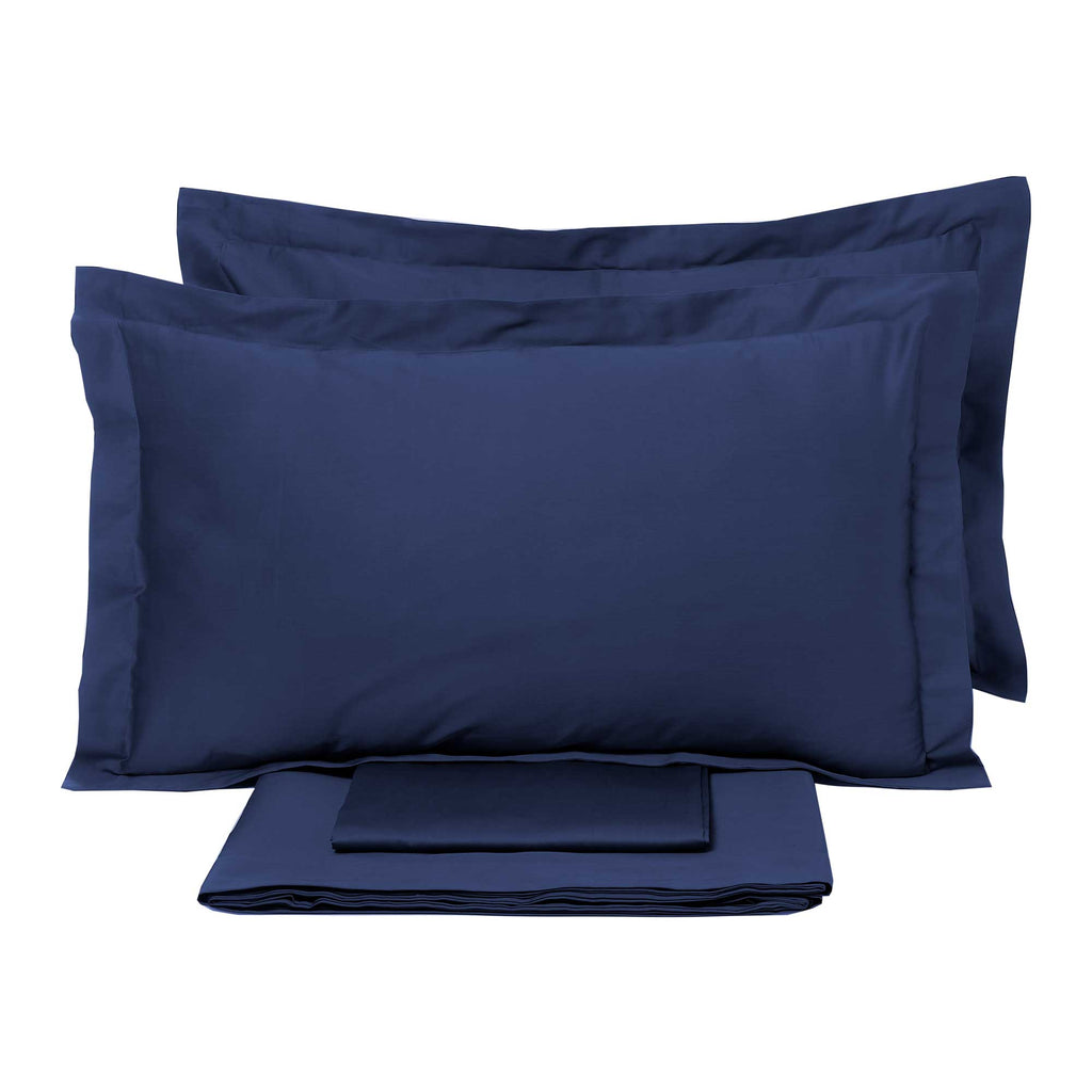 Set Lenzuola Matrimoniale Sopra Sotto e Federe Tinta Unita Garrini Clarice Blu