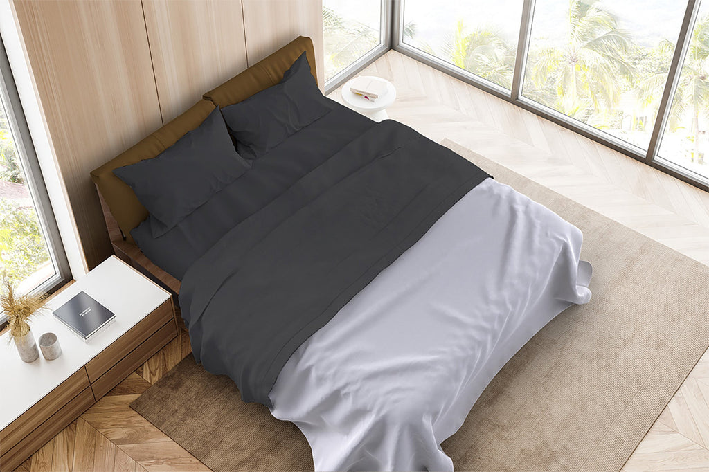 Set Lenzuola Matrimoniale Sopra Sotto e Federe Tinta Unita Grigio Scuro