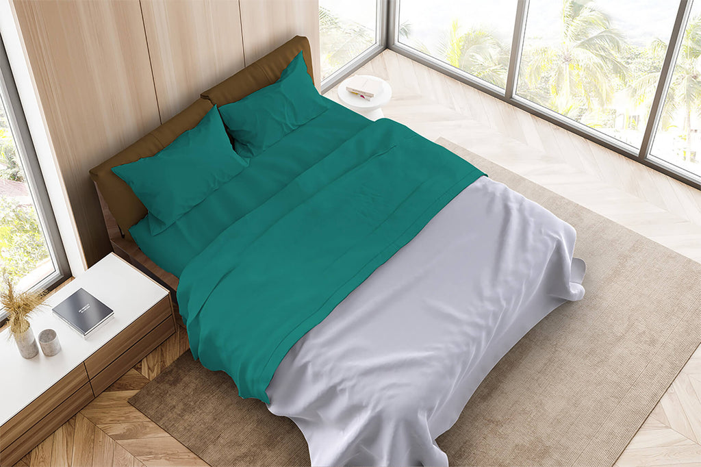 Set Lenzuola Matrimoniale Sopra Sotto e Federe Tinta Unita Verde Acqua