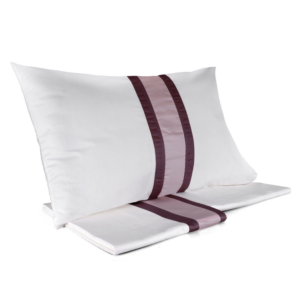 Completo letto in puro cotone con Balza in Raso. Il set è composto da Lenzuolo Sopra, Sotto con Angoli e 2 Federe dalla tinta elegante che valorizza la brillantezza del finissimo puro cotone con dippia balza in raso.