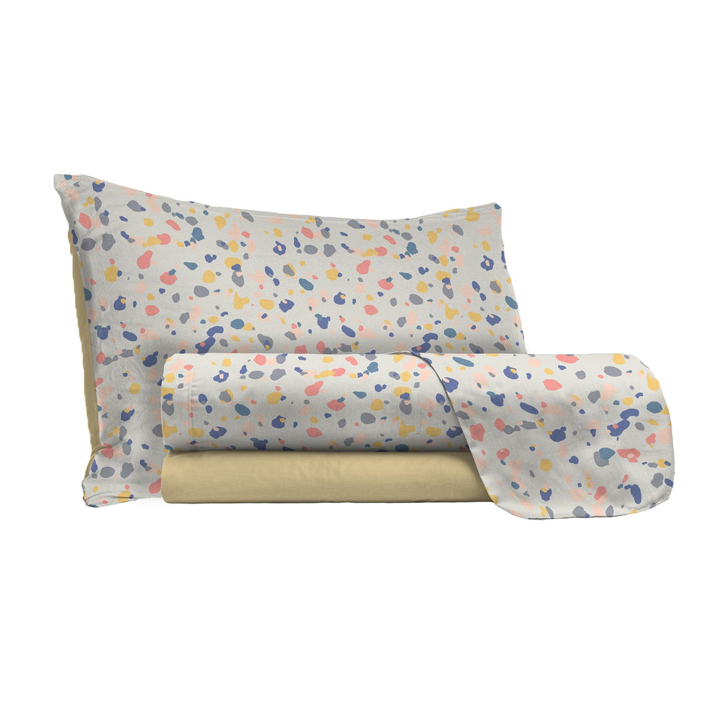 Il set è composto da lenzuolo sopra, lenzuolo sotto e federe. Studiato, assemblato e cucito interamente in Italia, realizzato in microfibra, dotato di finiture accurate e il finissaggio che ne facilita lo stiro. Tutte queste caratteristiche portano questo set ad essere un prodotto molto richiesto per la sua eleganza e semplicità. Le stampe sono testati per resistere a lunghi lavaggi mantenendo i colori brillanti.