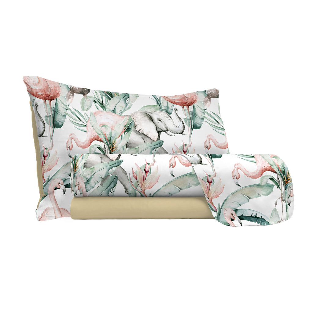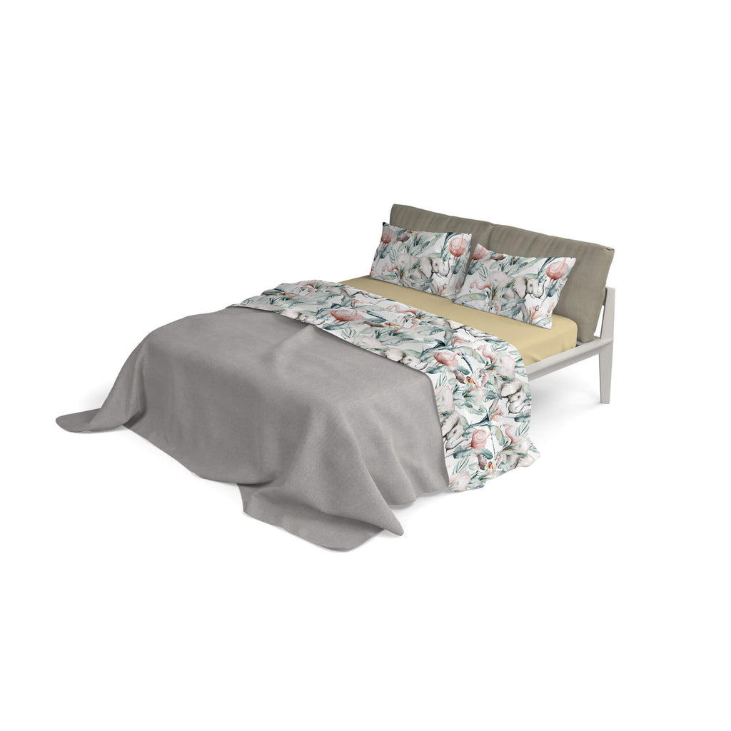 Completo letto in microfibra stampata. Prodotto provvisto di lenzuolo sopra, lenzuolo sotto e federe con certificazione Oeko tex che garantisce il rispetto per la natura e la totale assenza di sostanze nocive durante l'intero processo produttivo. Articolo Made in Italy.