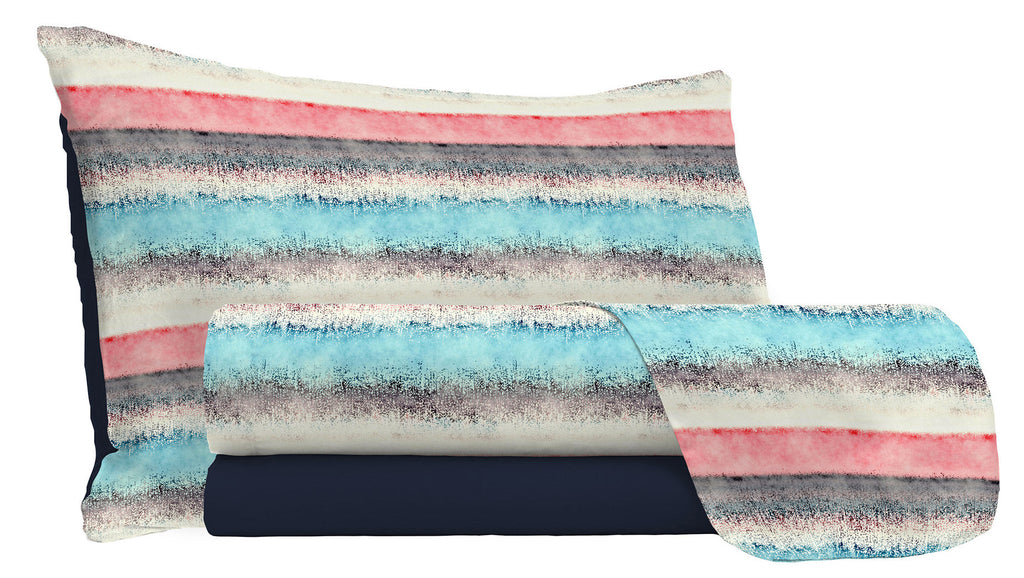 Completo letto in microfibra stampata. Prodotto provvisto di lenzuolo sopra, lenzuolo sotto e federe con certificazione Oeko tex che garantisce il rispetto per la natura e la totale assenza di sostanze nocive durante l'intero processo produttivo. Articolo Made in Italy.