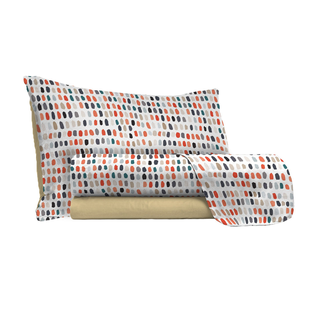 Il set è composto da lenzuolo sopra, lenzuolo sotto e federe. Studiato, assemblato e cucito interamente in Italia, realizzato in microfibra, dotato di finiture accurate e il finissaggio che ne facilita lo stiro. Tutte queste caratteristiche portano questo set ad essere un prodotto molto richiesto per la sua eleganza e semplicità. Le stampe sono testati per resistere a lunghi lavaggi mantenendo i colori brillanti.