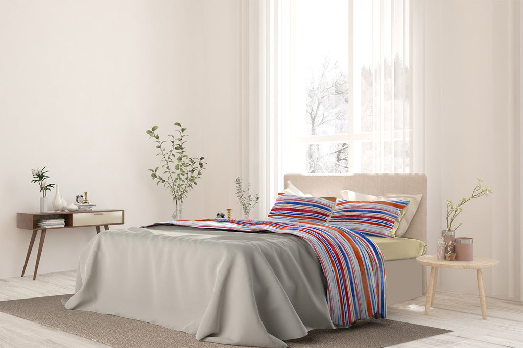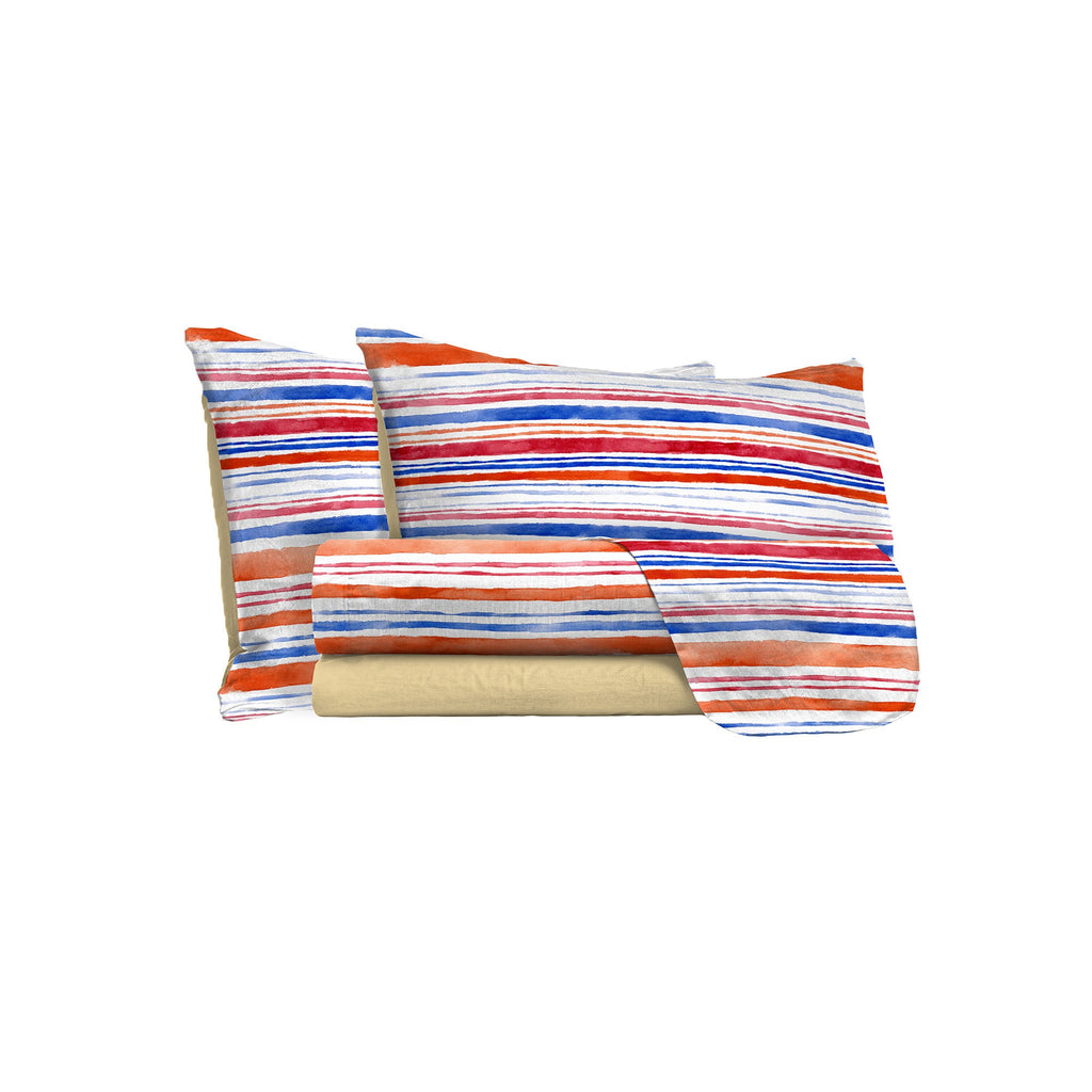 Set Lenzuola Matrimoniale con Stampa Sopra Sotto e Federe Strisce