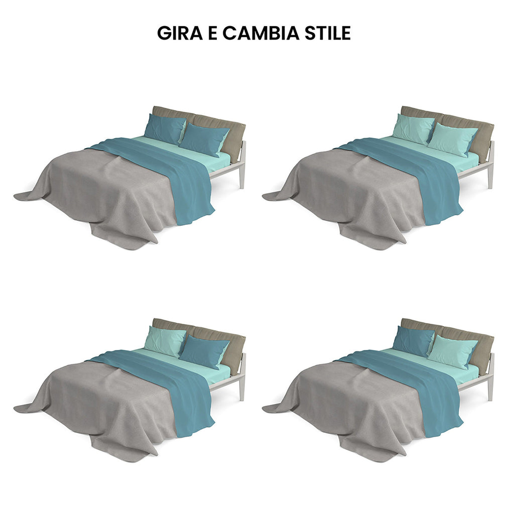 Set Lenzuola Sopra Sotto e Federe Doubleface Ottanio\/Verde Acqua