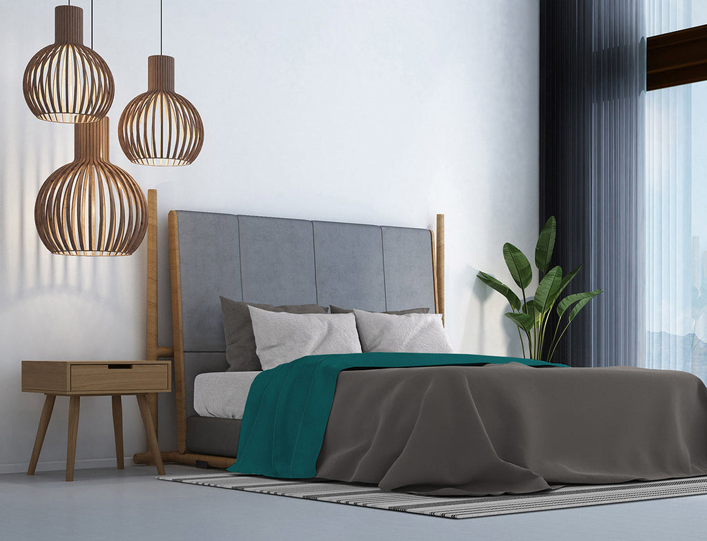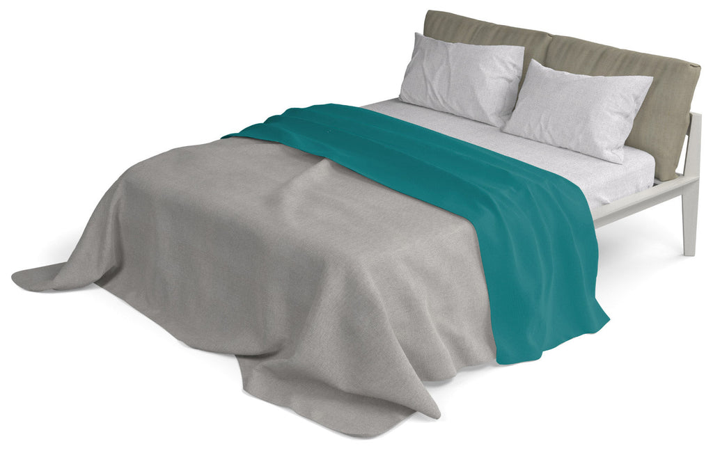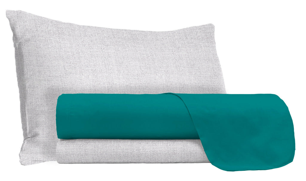Completo letto provvisto di lenzuolo sotto e federe color grigio e lenzuolo sopra colorato. Articolo Made in Italy, 100% cotone provvisto di certificazione Oeko-Tex.