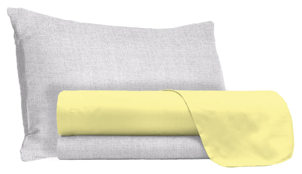 Set Lenzuola Matrimoniale Sopra Sotto e Federe in Cotone Giallo