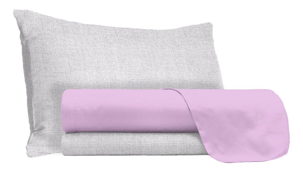 Set Lenzuola Matrimoniale Sopra Sotto e Federe in Cotone Lilla