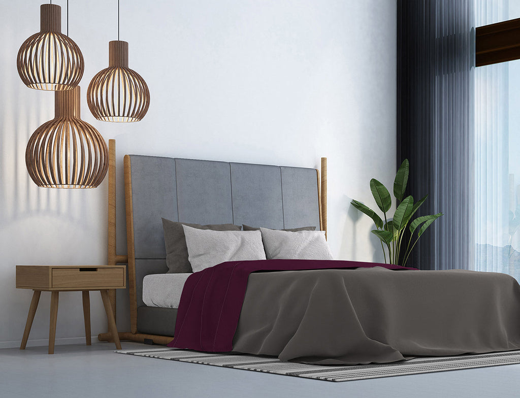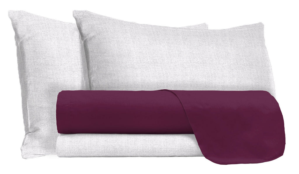 Set Lenzuola Matrimoniale Sopra Sotto e Federe in Cotone Prugna