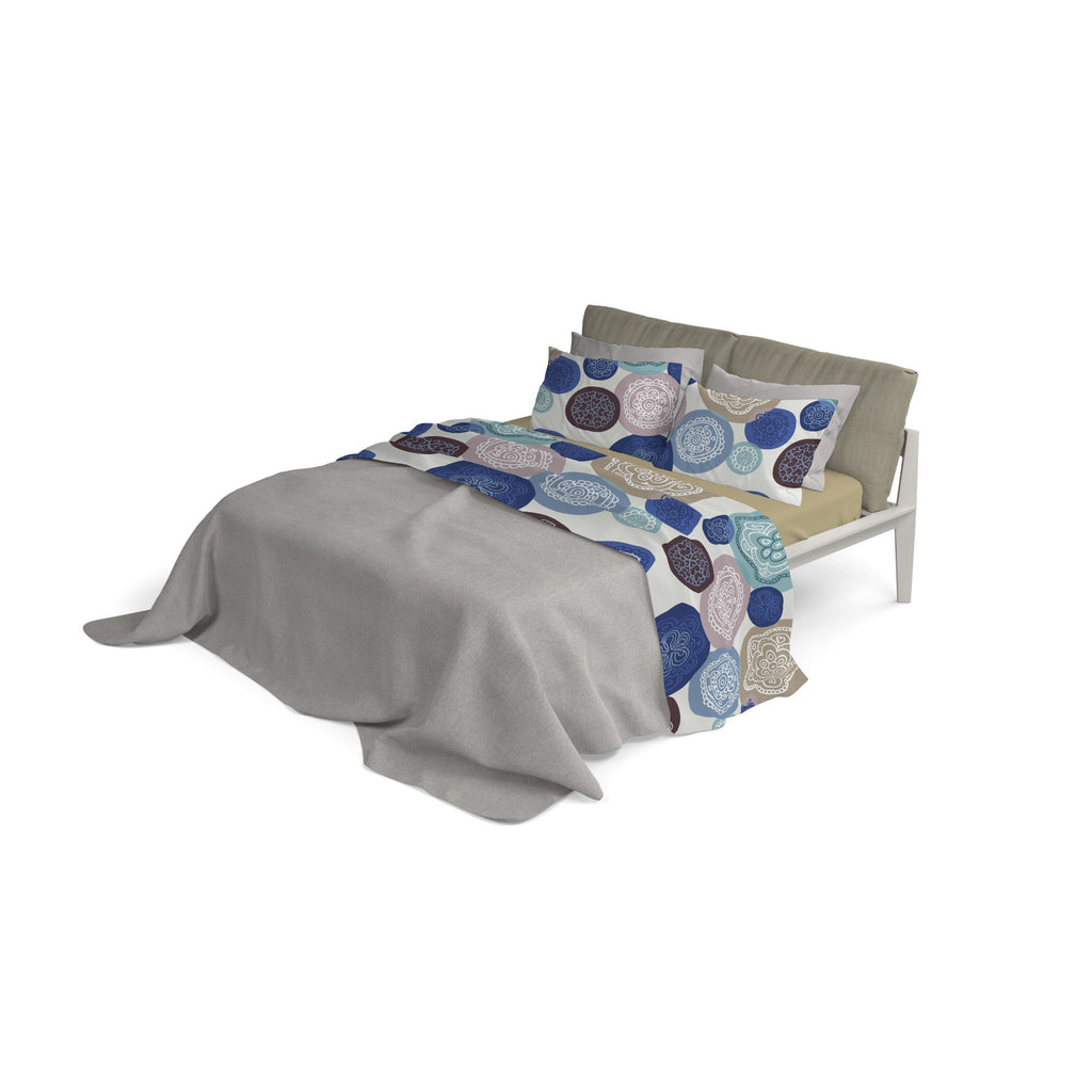 - 1 Piazza e Mezzo: Sopra 180 x 280 cm + Sotto 120 x 200 cm + angoli con elastico da 25 cm + federa 52 x 82 cm + patella interna